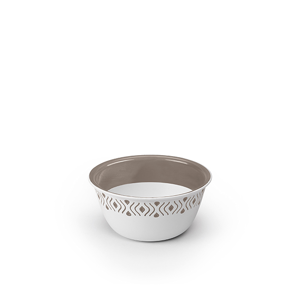 Bol en plastique élégamment décoré pour la table et la cuisine, disponible en différentes tailles. Polyvalent, léger, pratique et adapté à une utilisation alimentaire.