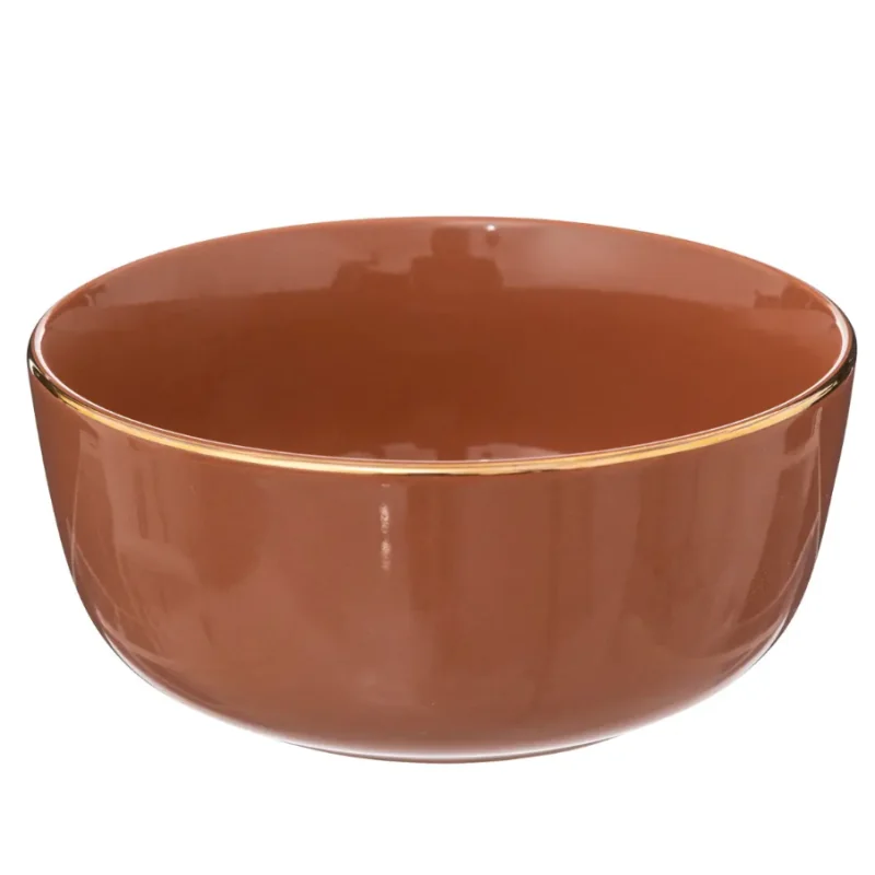 BOL EN PORCELAINE-15CM-SUBLIMA MARRON-BOUT DORE