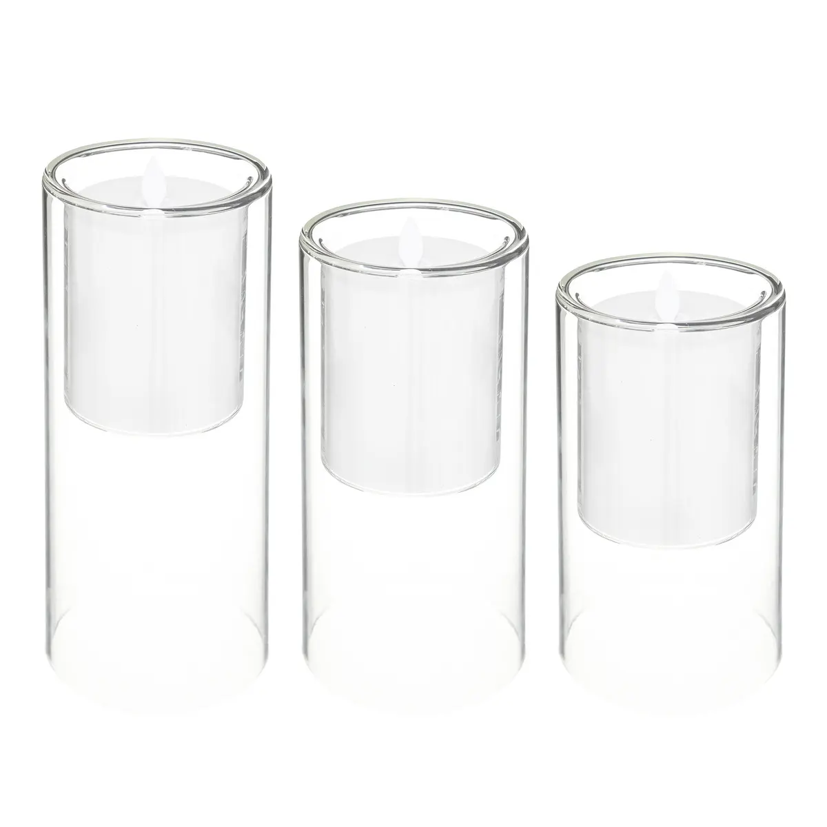 Bougie led bouble verre-3pcs-10×15/10×20/10x25cm-blanc-chaud sena