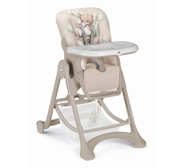 Chaise haute pour bebe cam campione-taupe-beige-motif ourson +étoile en 3D