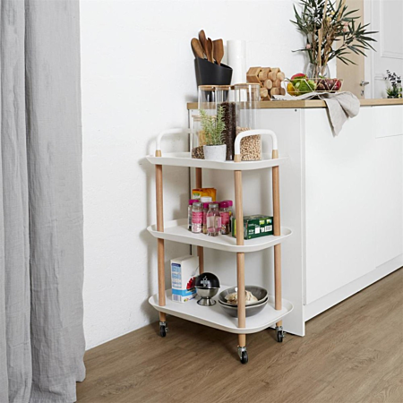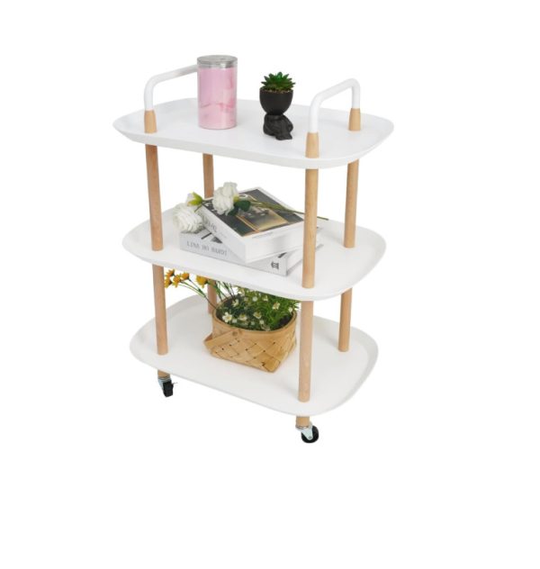 Chariot de rangement en bois 3 niveaux en plastique-blanc-37x58x85cm