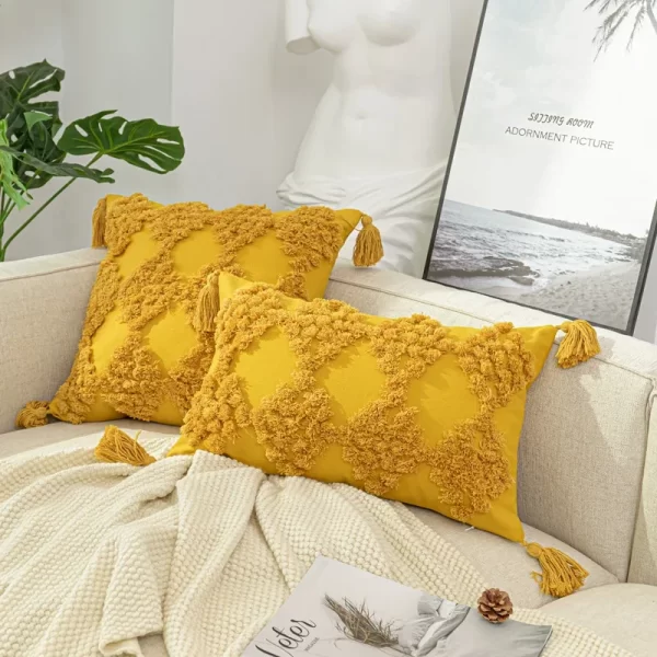 COUSSIN DECORARIF-30X50CM-DEHOUSSABLE-BRODE-JAUNE