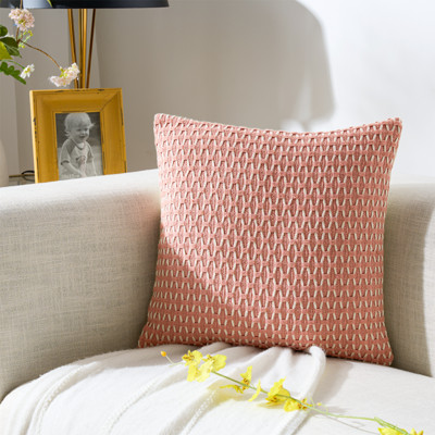 COUSSIN DECORATIF-45X45CM-DEHOUSSABLE BRODE- ROSE BLANC