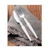 Couteaux : lames avec une durabilité de bord plus longue grâce au traitement thermique. Fourchettes, cuillères et cuillères à café : l’épaisseur de l’acier et l’emboutissage des lames assurent une plus grande résistance aux produits, évitant les déformations.