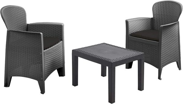 - Contenu de la livraison : 2 fauteuils et 1 table – Fauteuils avec coussins imperméables pour plus de confort.