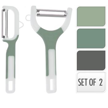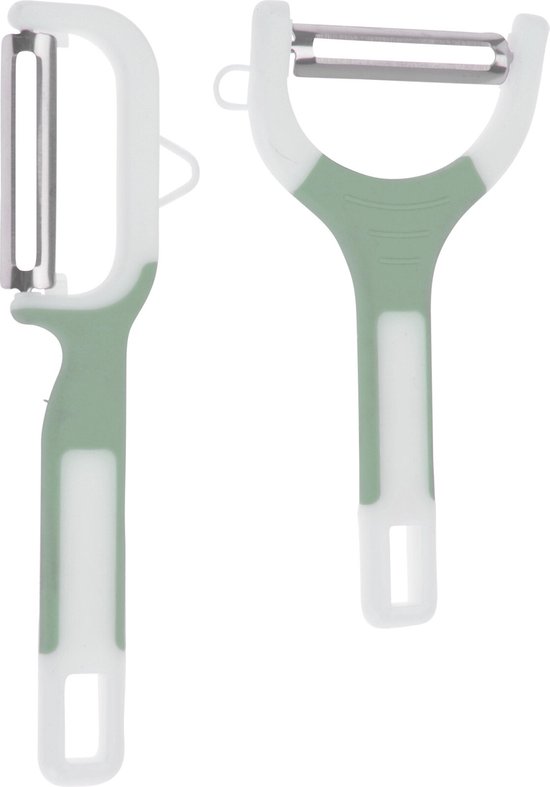 Un ensemble de deux gadgets de cuisine pour éplucher les fruits et légumes.