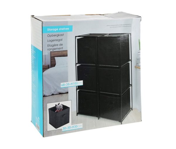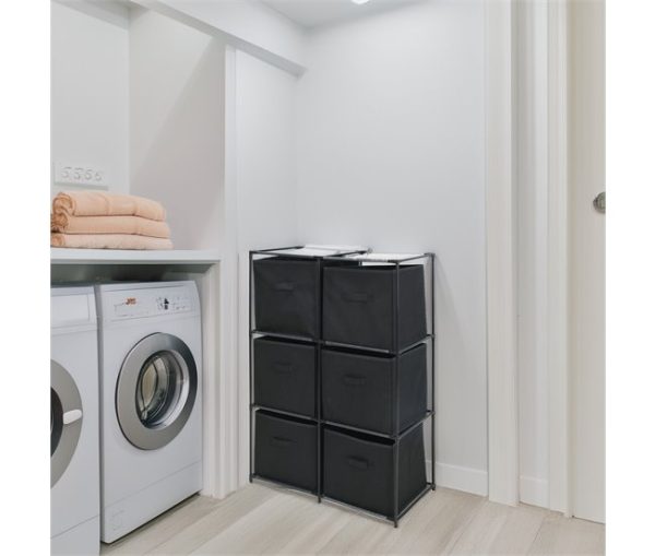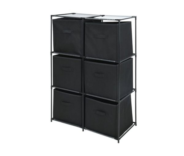 Etagère de rangement-68x35x102cm-cadre en métal 6 paniers en textile-noir