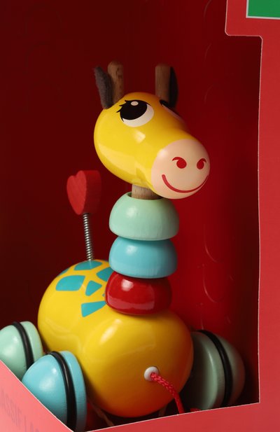 Modèle emblématique de Vilac en bois tourné laqué, Paf la Girafe revient cette année complétement redesigner ! Elle s’appelle Flip Flap la Girafe et porte de nouvelles couleurs et un cœur tout mignon !