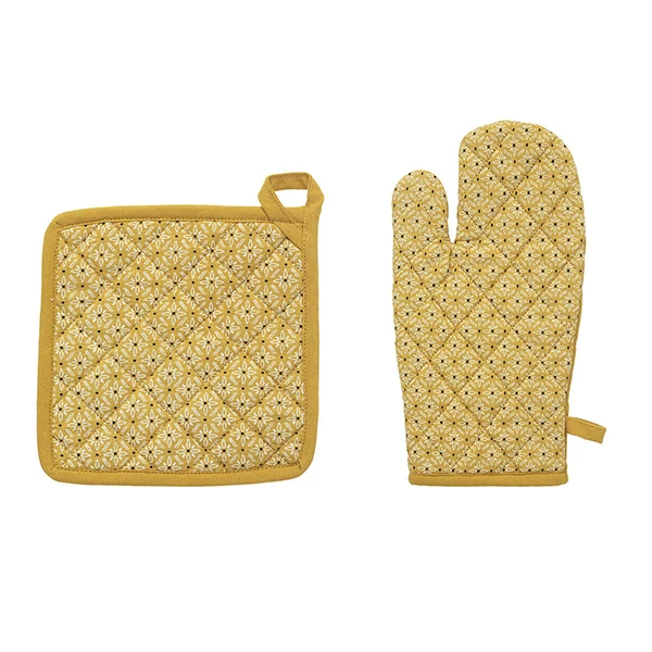 De couleur jaune moutarde et doté d’un imprimé ocre charmant, cet ensemble apporte de la chaleur et de la convivialité à votre espace culinaire.