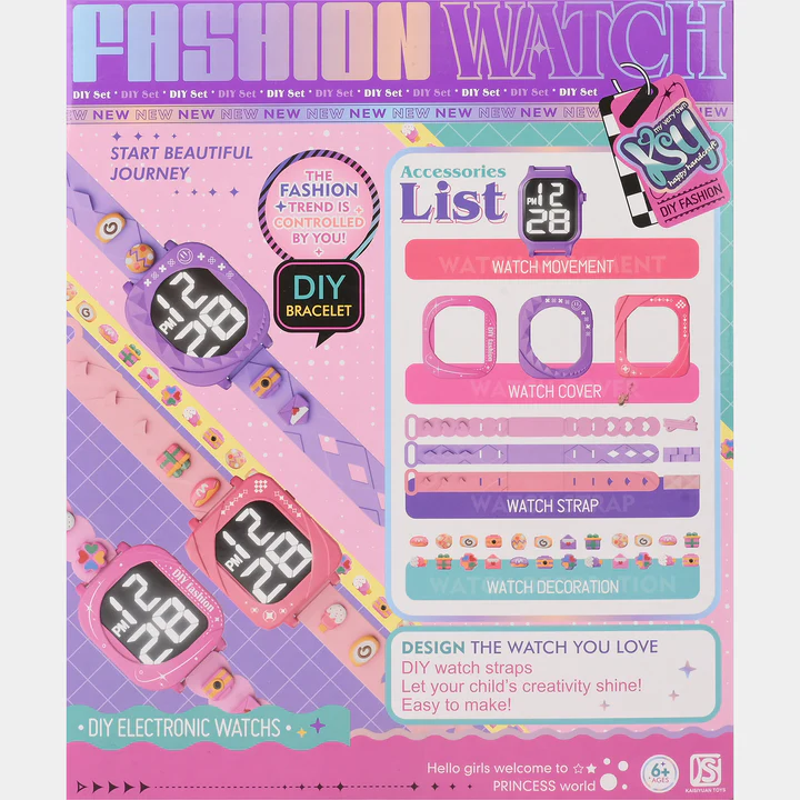 Les enfants peuvent créer leur propre montre élégante en combinant bracelets et accessoires.