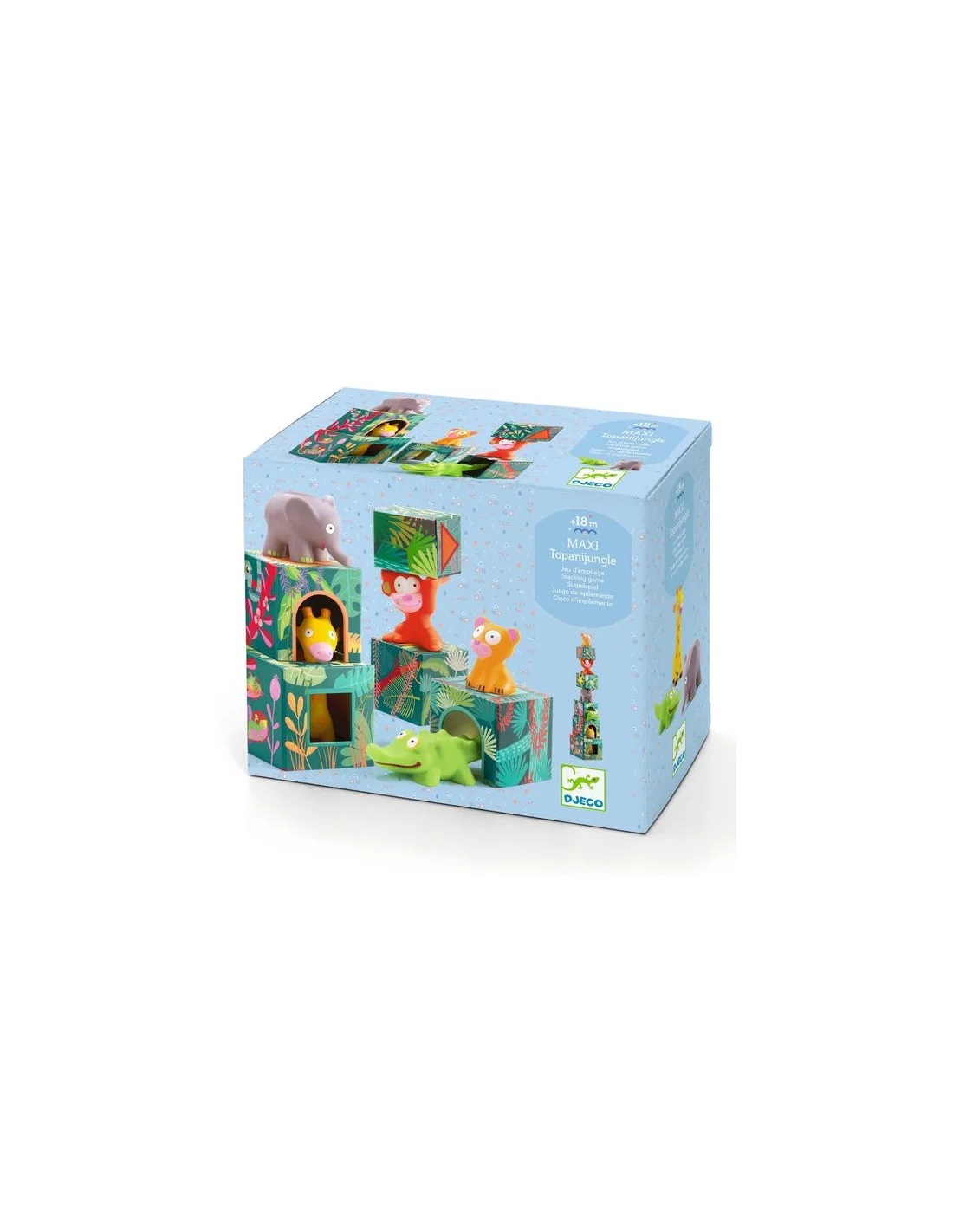 Découvrez le jouet d’éveil Maxi Topanijungle de Djeco, un jeu d’empilage et de construction composé de cubes et des personnages destiné aux enfants dès 18 mois.