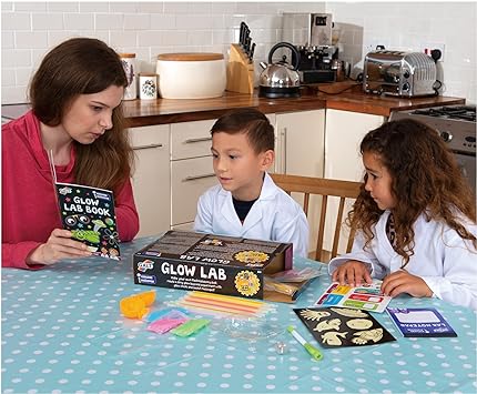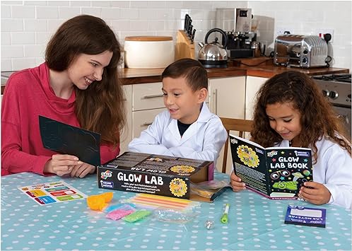 Comprend un livre de laboratoire en couleur de 24 pages avec 11 expériences amusantes