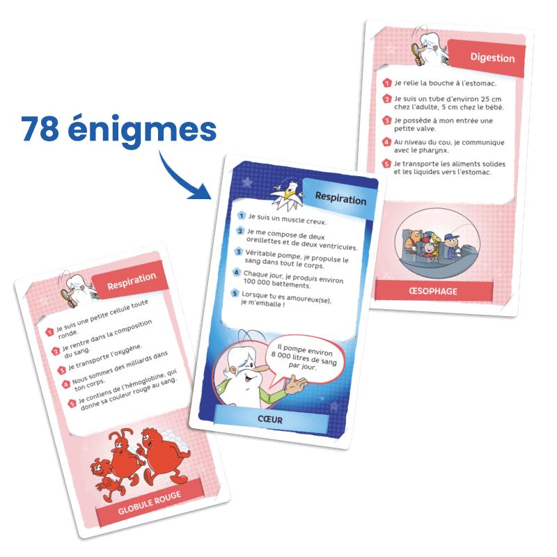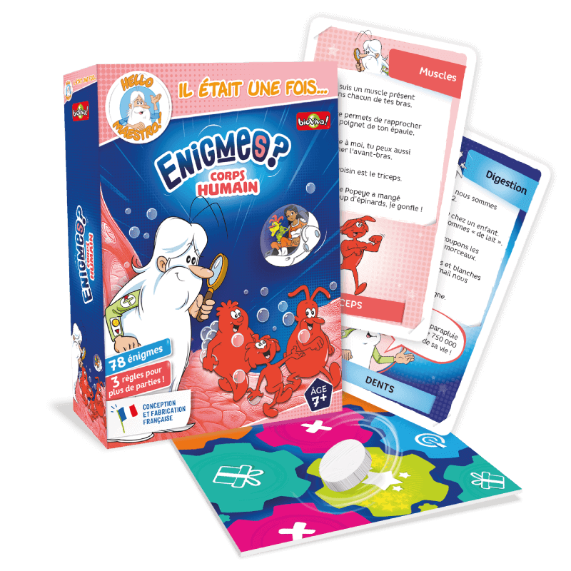 Faites preuve d’adresse en lançant le jeton sur le plateau pour tenter de gagner plus de cartes “Il était une fois… Enigmes – Corps humain” !