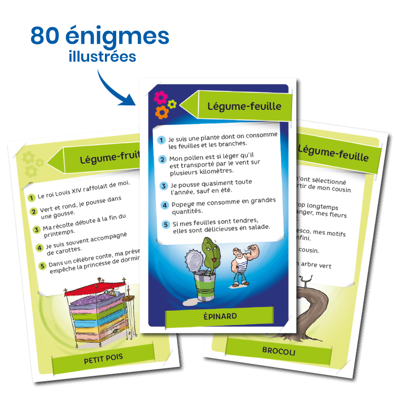 Avec Enigmes – Fruits et légumes, tentez d’être le plus rapide à deviner les fruits et légumes qui se cachent derrière 5 indices instructifs et amusants.