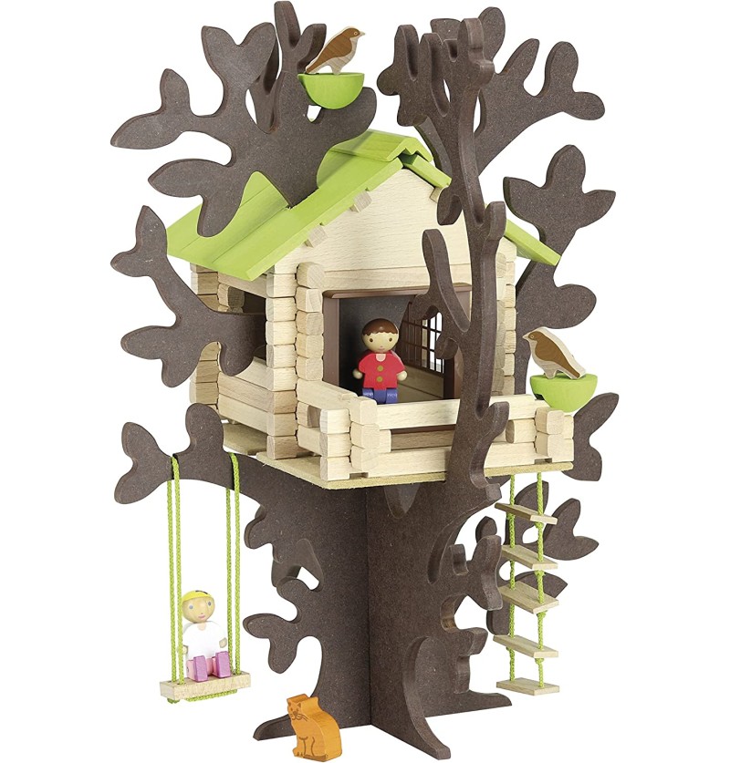 Un grand classique des jeux de construction avec des planches de bois pour fabriquer une cabane dans les arbres.
