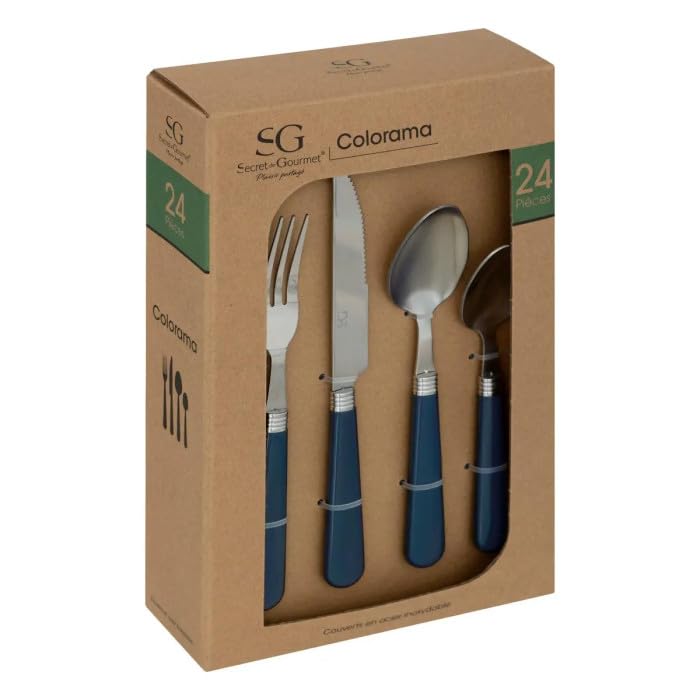 MENAGERE 24PCS EN INOX-COLORAMA MANCHE BLEU
