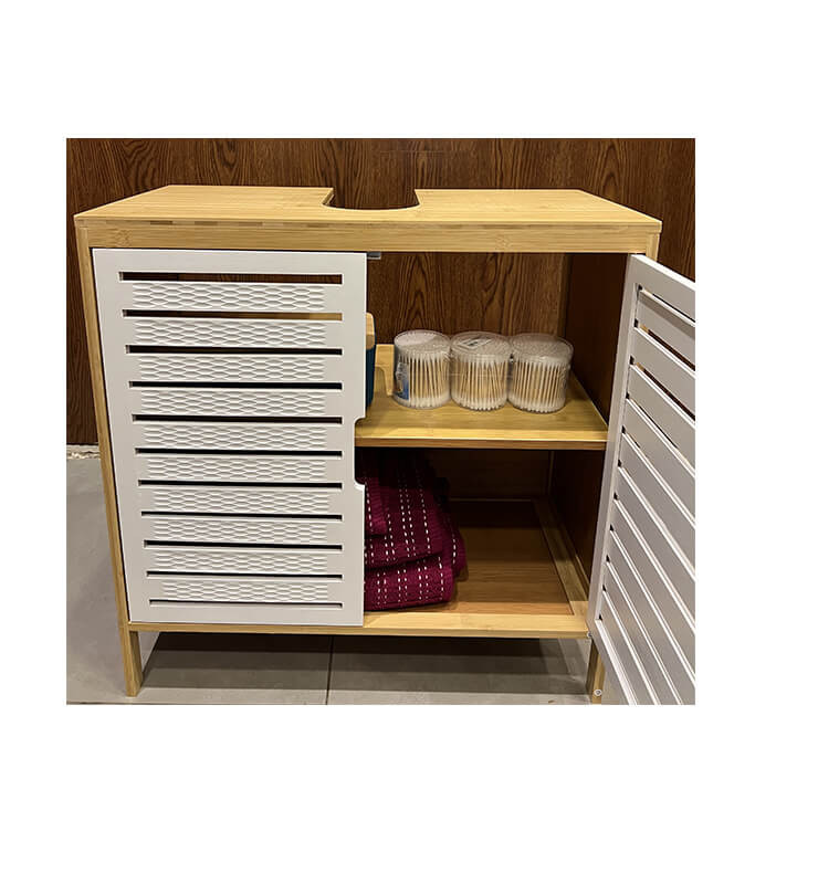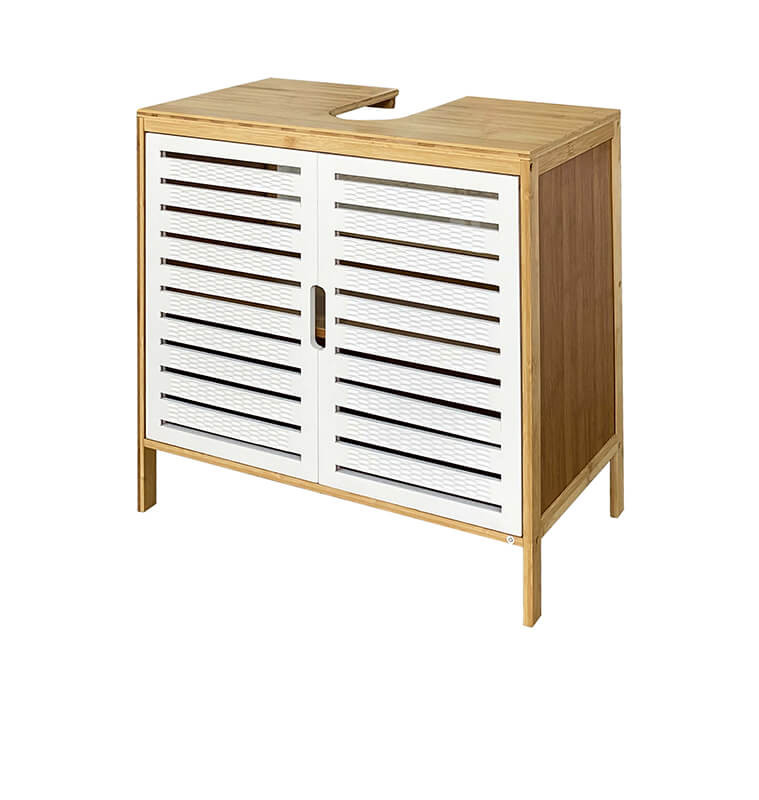 Meuble de rangement en bambou-62×31,5cm-2 niveaux/2portes naturel-blanc