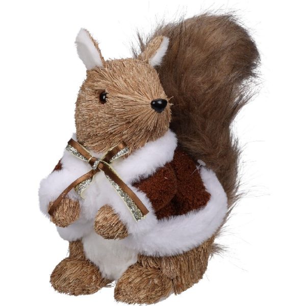 NOEL-ECUREUIL D’AUTOMNE EN PAILLE-TEXTILE MARRON BLANC