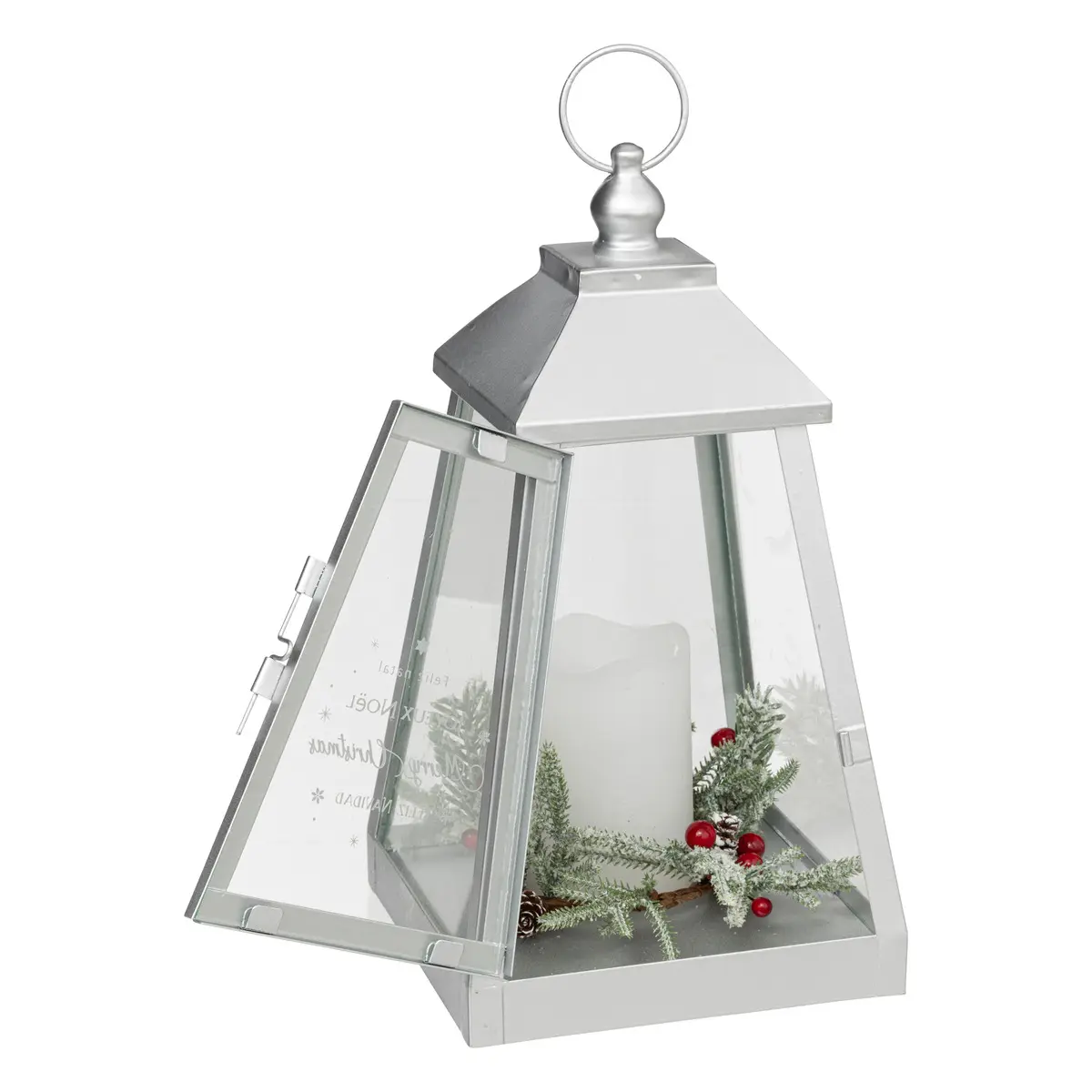 Noel lanterne lumineuse a led-32x17cm-en métal deco sapin ASST