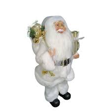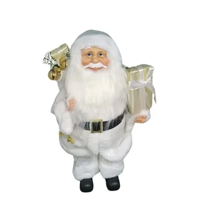 Noel père noël debout-40cm-sac + paquet cadeau-blanc-dore
