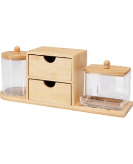 Ensemble de rangement comprenant un porte-coton, un porte-tiges et un petit tiroir.