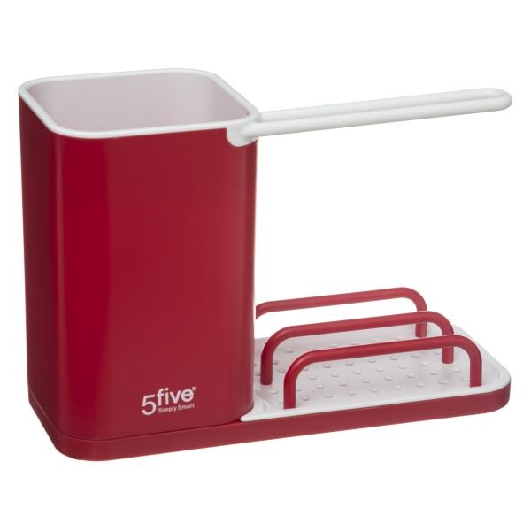 Organisateur à poser pour évier de couleur NEO ROUGE avec égouttoir intégré pour éponges et torchons.