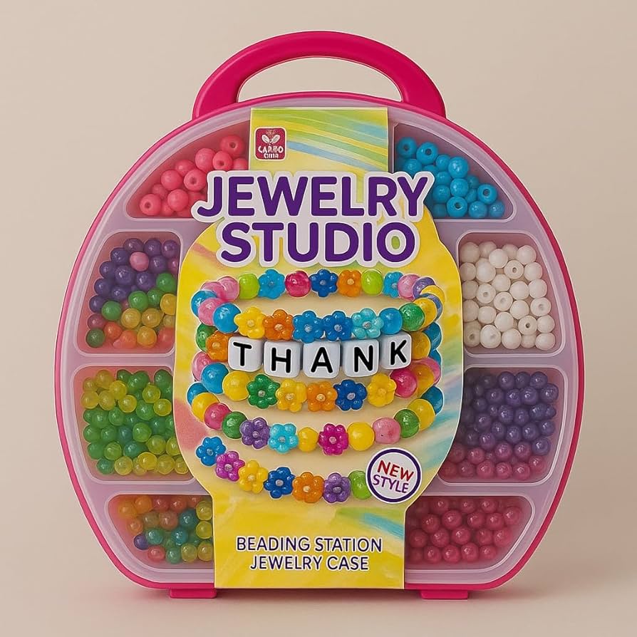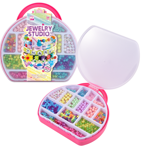 Présenté dans une boîte semi-circulaire, ce kit de création de bijoux est portable, propre et idéal pour des heures de jeu créatif à la maison, en voyage ou lors de fêtes.