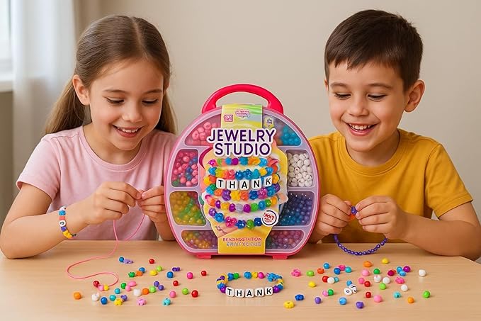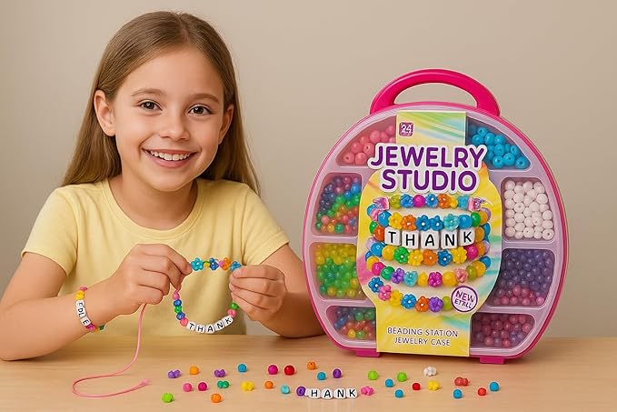 Avec plus de 1 200 perles colorées aux formes amusantes, breloques élégantes et détails scintillants, ce kit permet aux enfants de créer des bracelets, des colliers et bien plus encore, en exprimant leur style personnel.