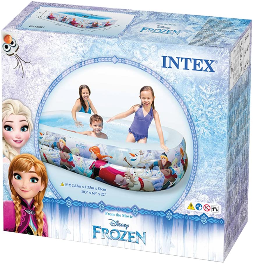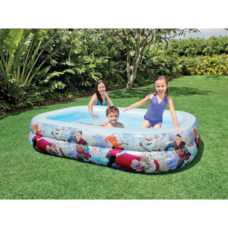 Piscine Frozen 262 x 175 x 56 cm, capacité Eau 770 litres, niveau suggéré de remplissage 36 cm, 2 chambres à air avec valve , âge 6 ans +.