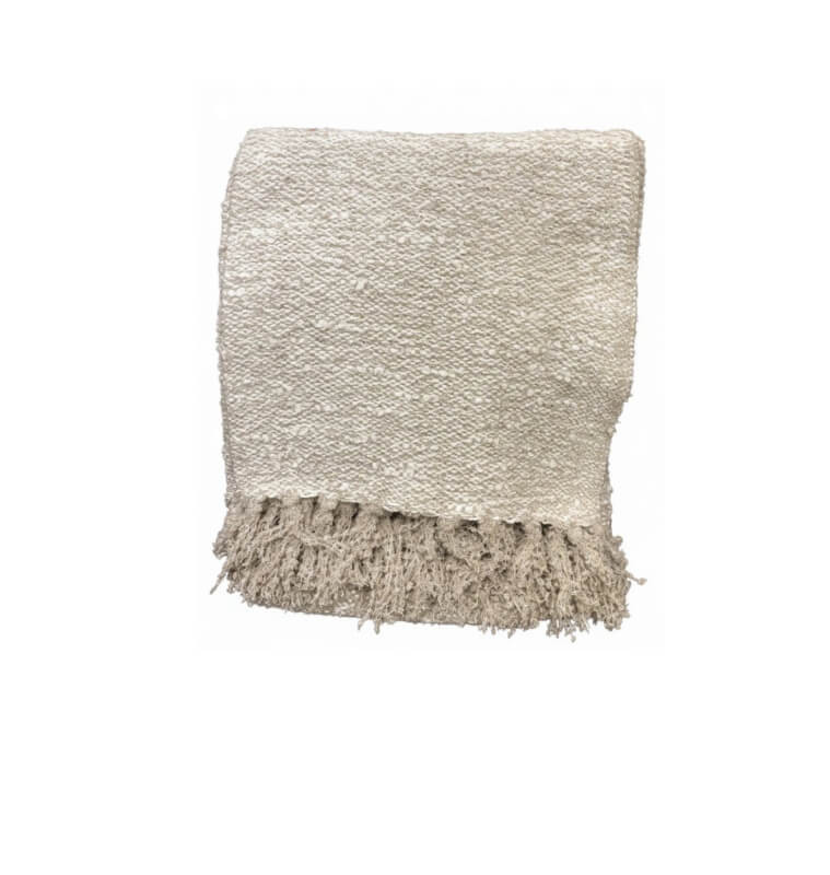 Plaid-125x150cm-en coton-beige 2 tons +franges