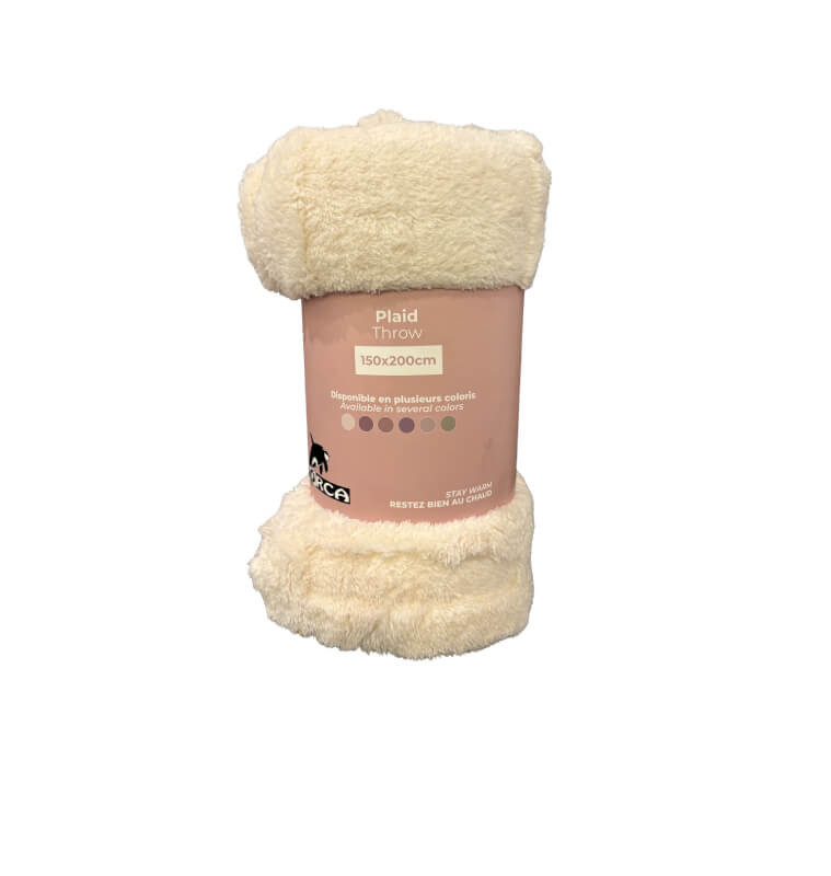 Plaid-150x200cm-en polyester effet fourrure-blanc