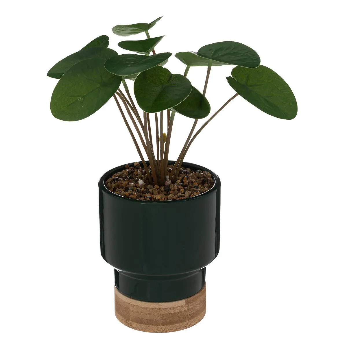 PLANTES ARTIFICIELLES-26CM-POT CERAMIQUE-BOIS-VERT