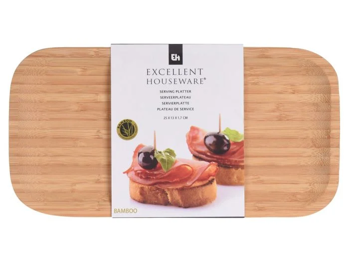 Le plateau en bambou Excellent Houseware mesure 25 x 13 x 2cm.