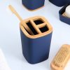 PORTE BROSSE A DENT EN PLASTIQUE BLEU MARINE COUVERCLE EN BAMBOU