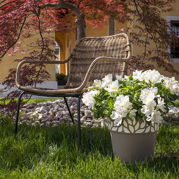 Pot Cloe 30 cm avec système d’auto-arrosage, adapté à une utilisation en extérieur.