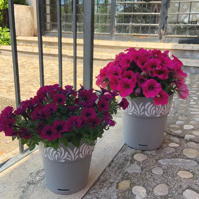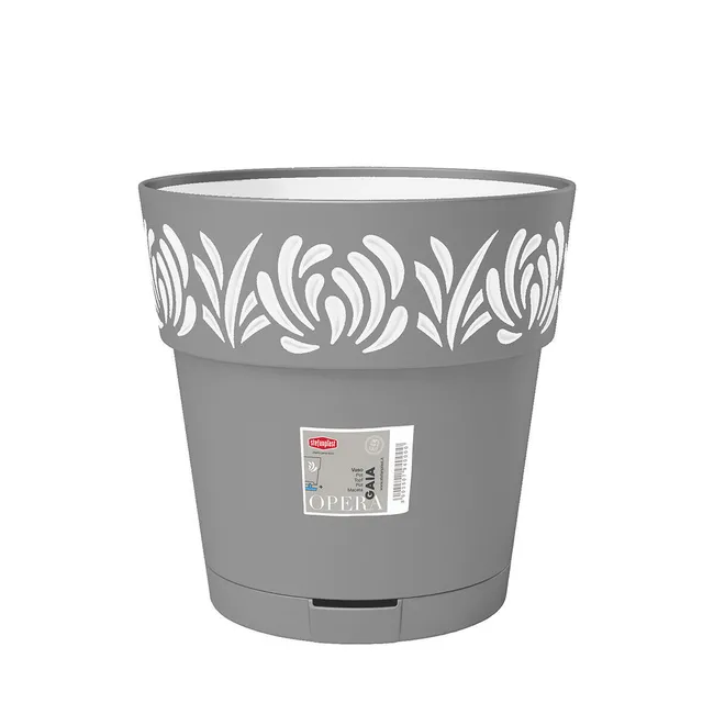 POT DE FLEUR EN PLASTIQUE ROND-30CM-GAIA-GRIS BLANC