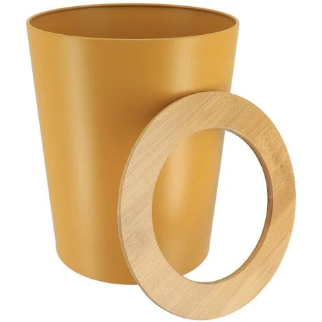 Poubelle de salle de bain 5L en métal moutarde avec couvercle en Bambou