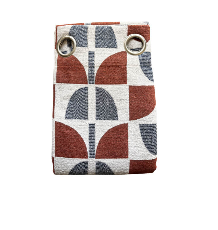 Affirmez votre style décoratif avec ce rideau jacquard au motif géométrique bold en blanc, terracotta et bleu-gris.