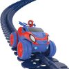 Circuit de course automobile Spidey – avec cet ensemble de circuits flexibles, les montées abruptes, les descentes rapides et les déplacements aériens ne posent aucun problème – car il appartient à Spidey et à ses super amis