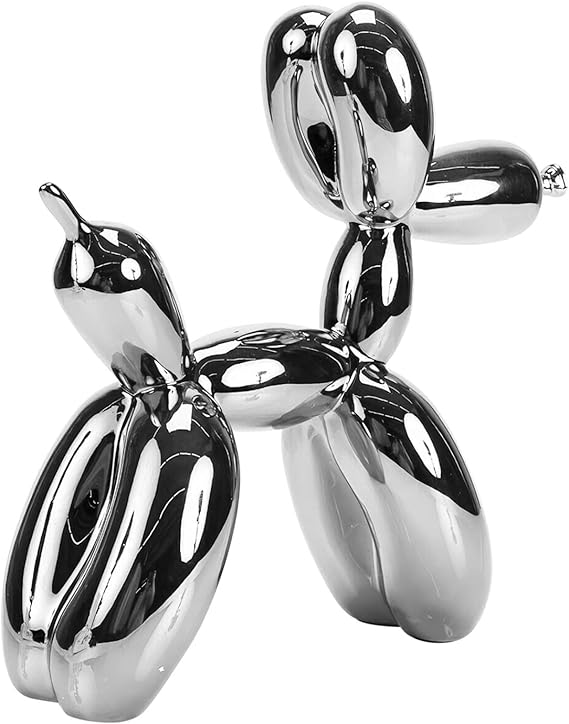 STATUETTE EN RESINE DE CHIEN-26CM-ARGENTE EFFET MIROIR