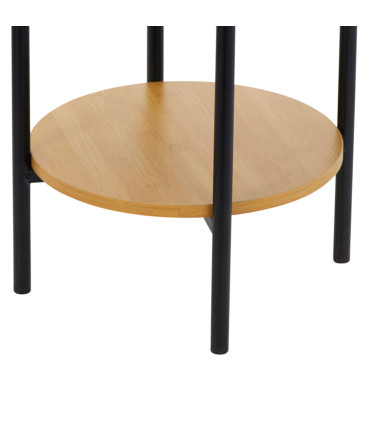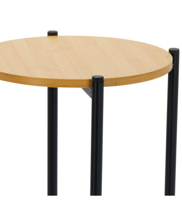 Table d’appoint ronde-31x61cm-cadre en metal-noir-2 plateaux en bois clair