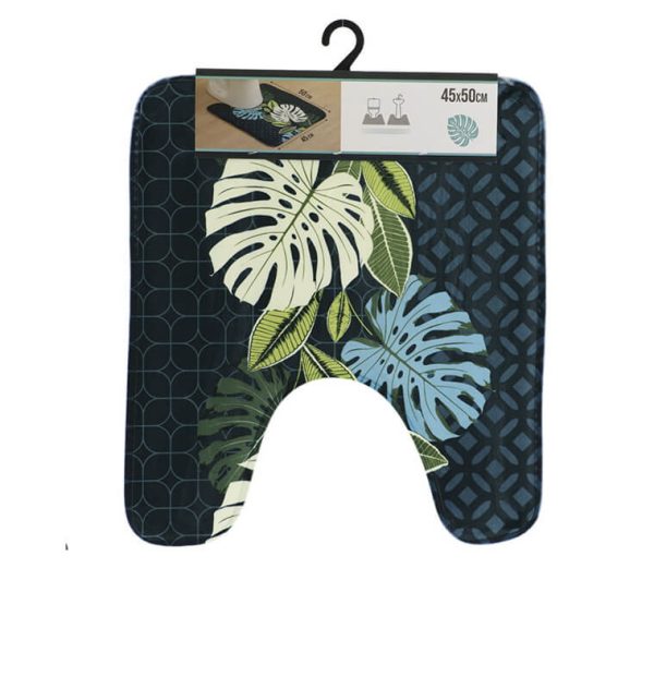 Tapis contour wc- 45x50cm-imprime motif feuille vert-bleu