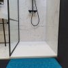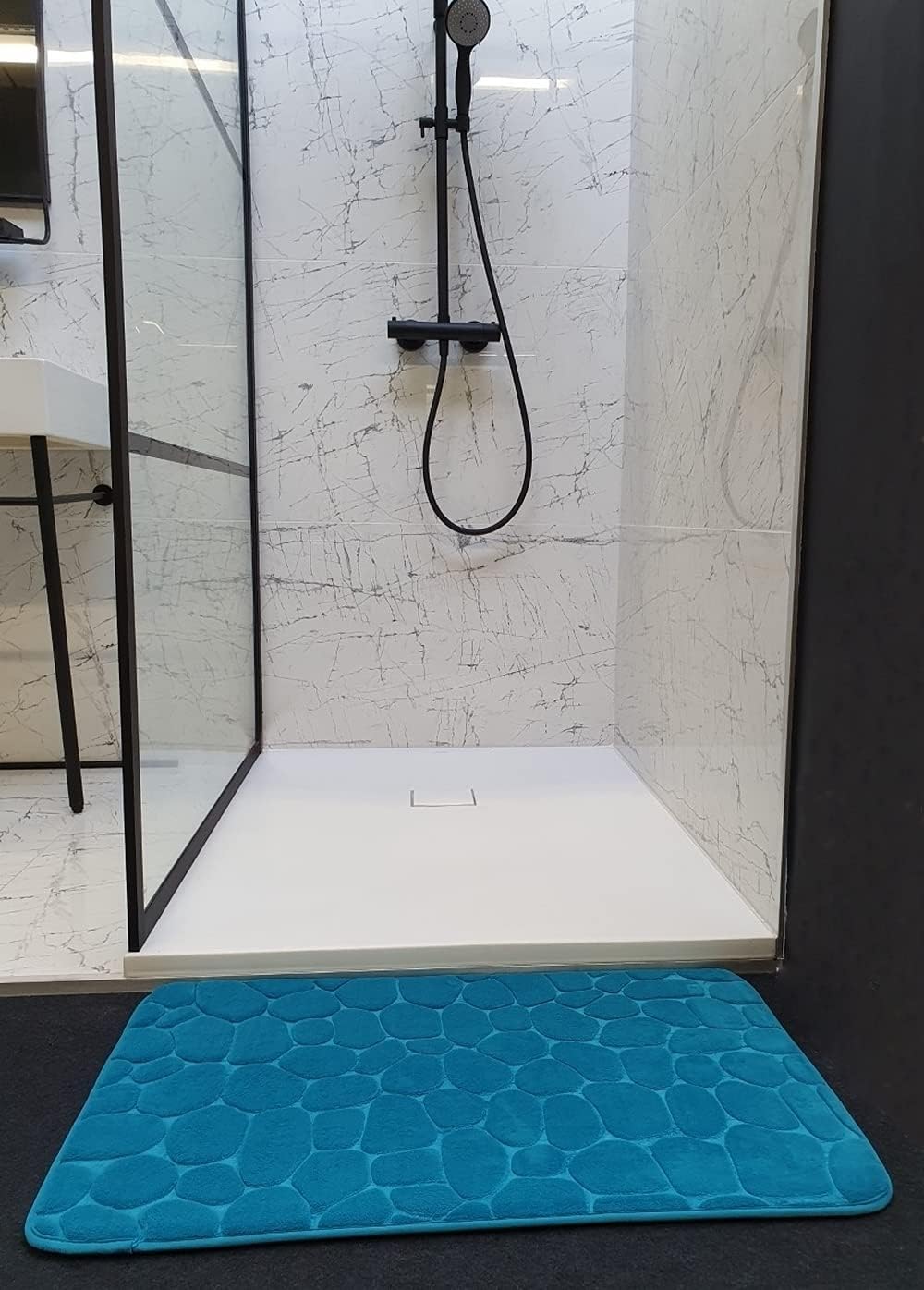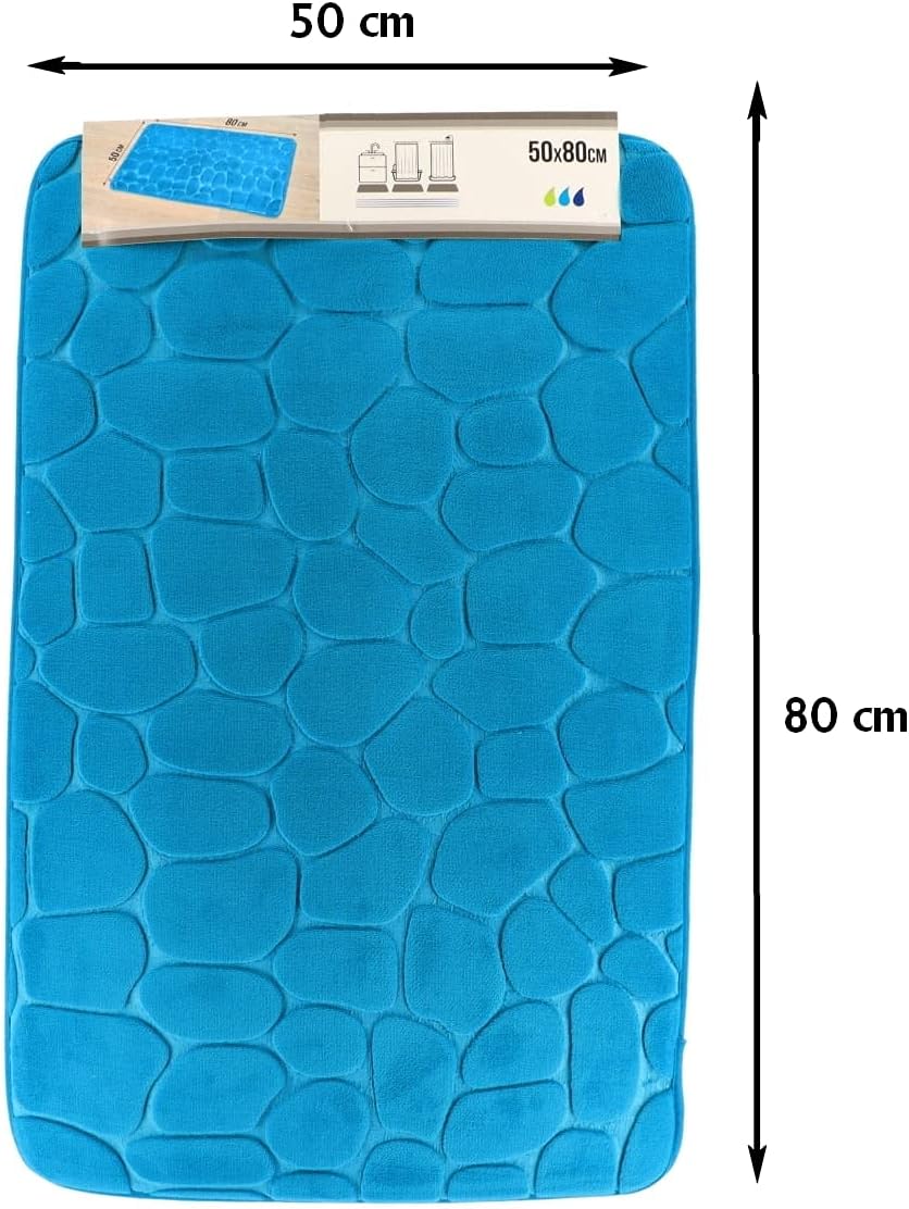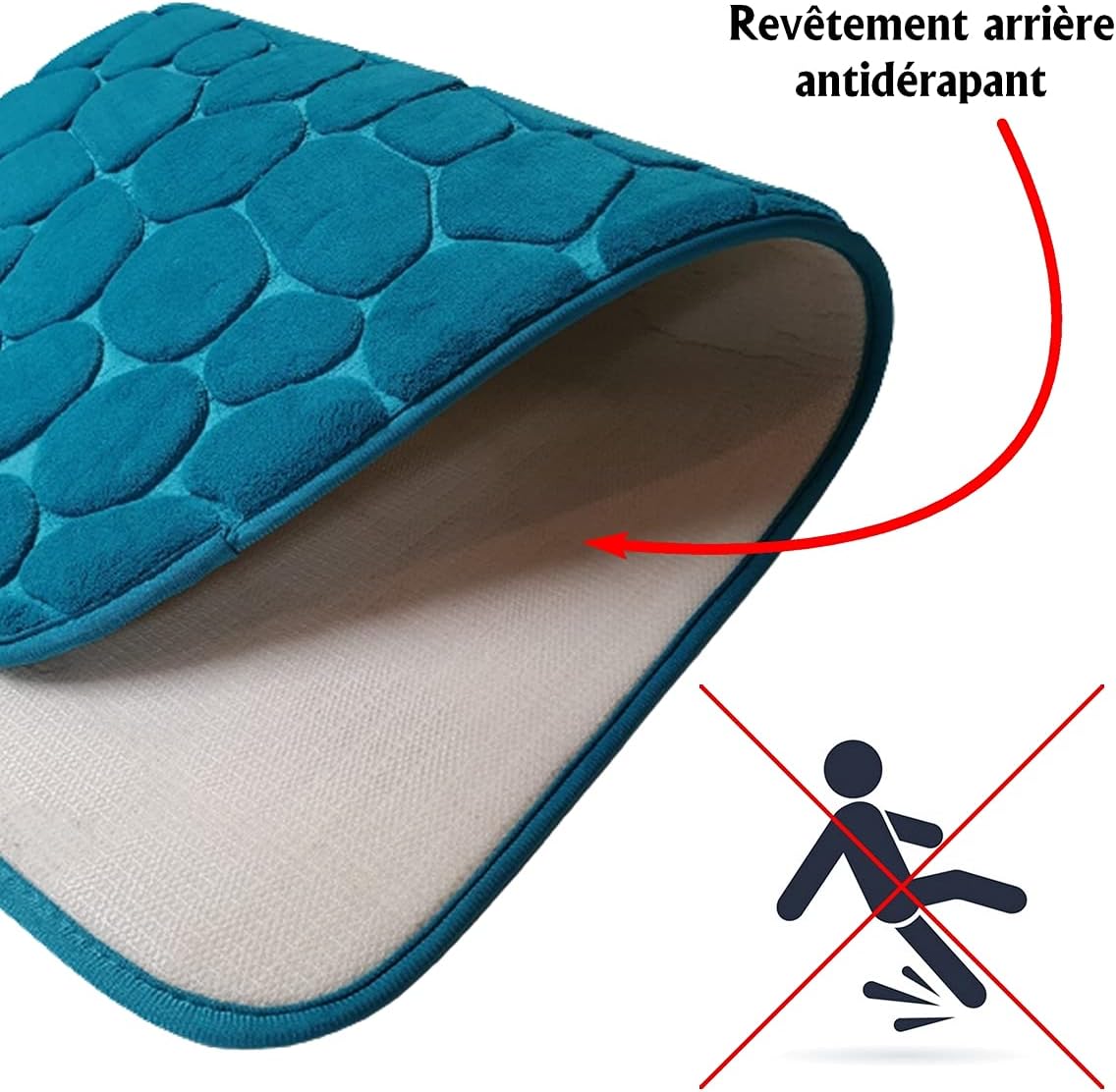 Tapis en microfibre très doux et confortable. Le dessin de galet en relief, non seulement esthétique, permet de stimuler les pieds tel un massage, lorsque vous le piétinez le matin, pendant que vous vous préparez.