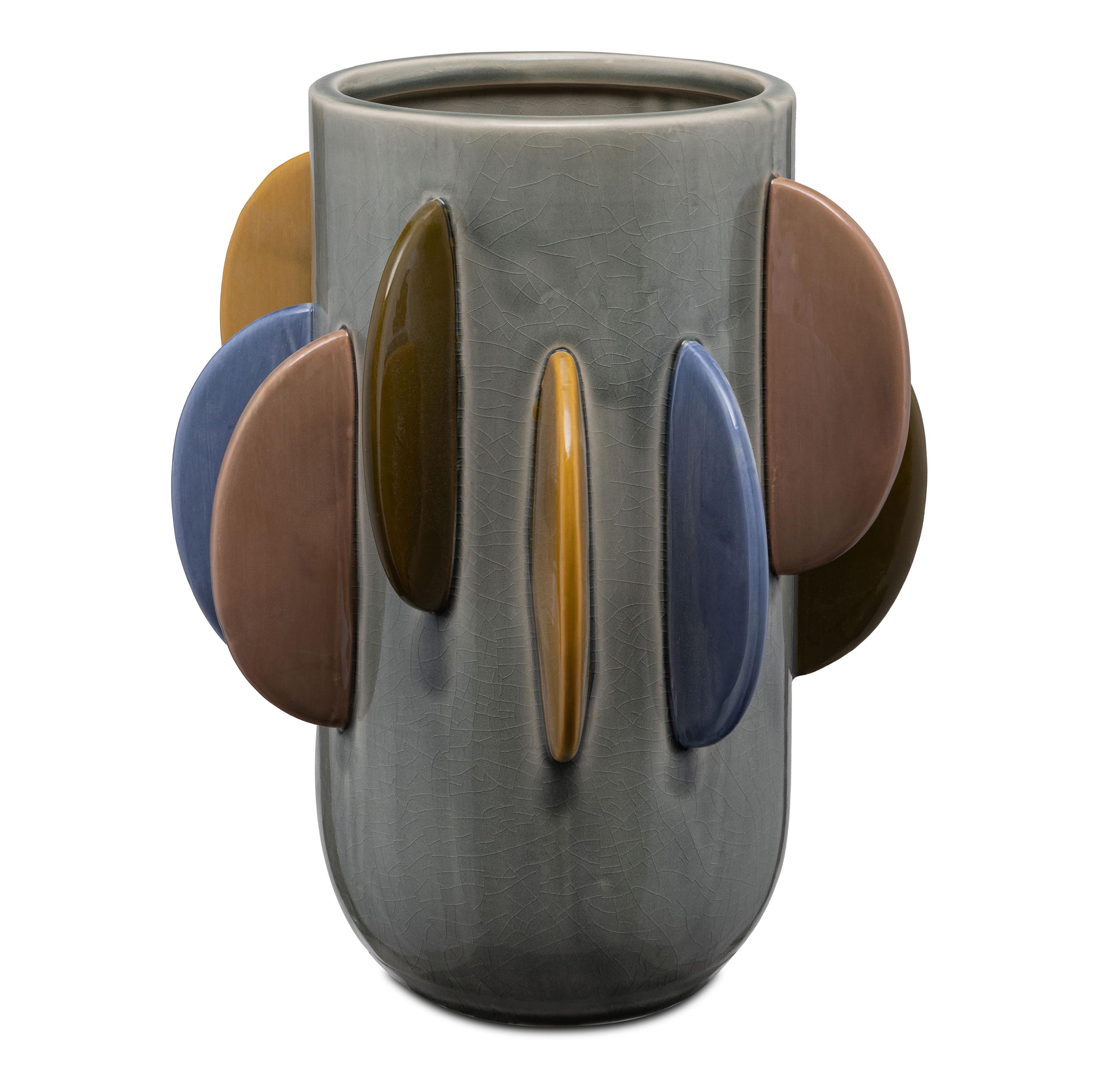 VASE EN CERAMIQUE-21.2X26.5CM-VERT-MOTIF-12 MANCHES MULTI