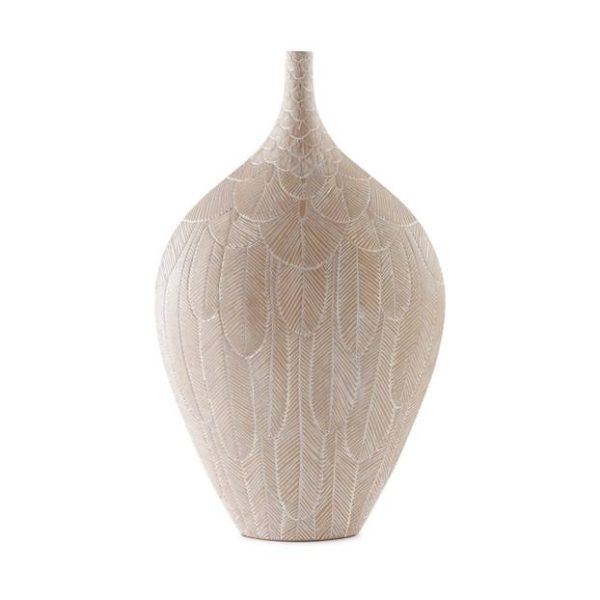 Vase en polyresine -59cm-plat forme bouteille marron-beige motif plumes