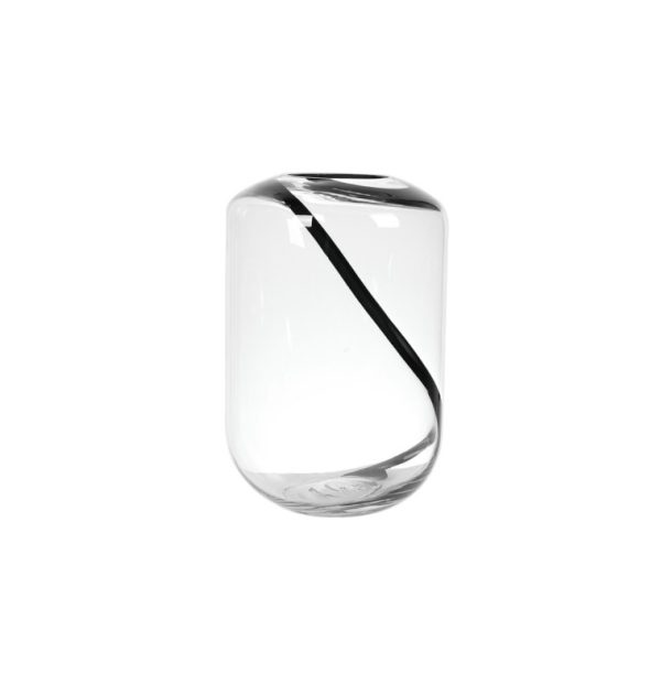 Élégant et moderne, ce vase en verre transparent est rehaussé d’une bande noire verticale pour un contraste raffiné.