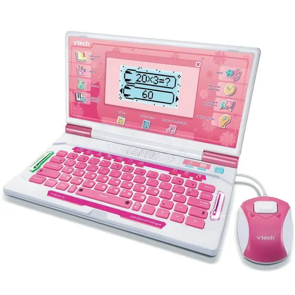 Très complet, ce nouvel ordinateur éducatif bilingue rose de la gamme Genius XL de Vtech permet de découvrir 164 activités éducatives et ludiques, entièrement bilingues (francais, anglais) et réparties en 8 catégories : Lecture, Mathématiques, Sciences, Musique et créativité, Jeux, Langues étrangères, Heure et Défis rapides.