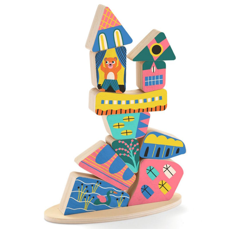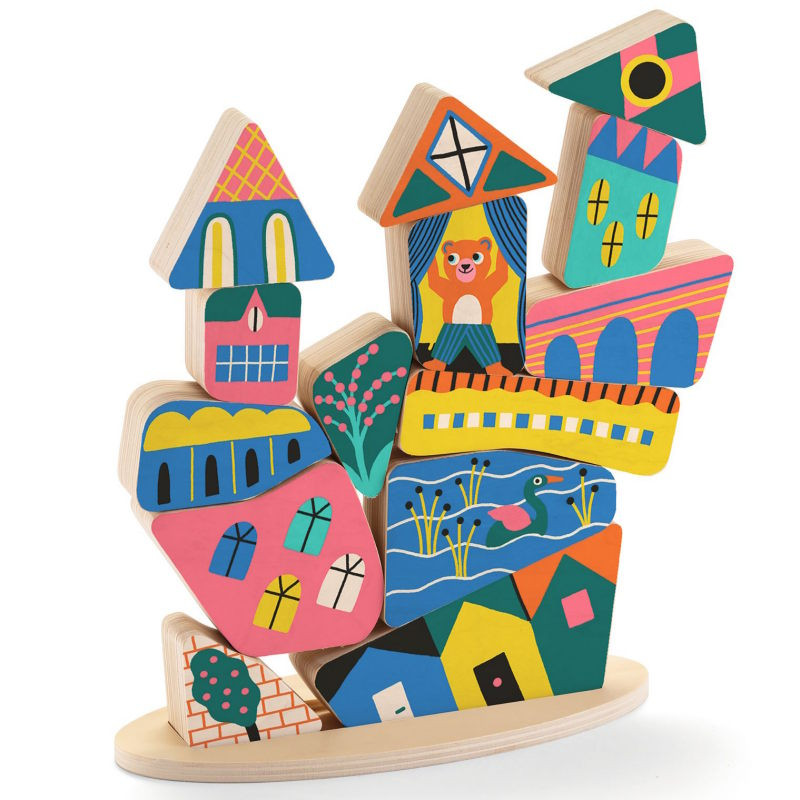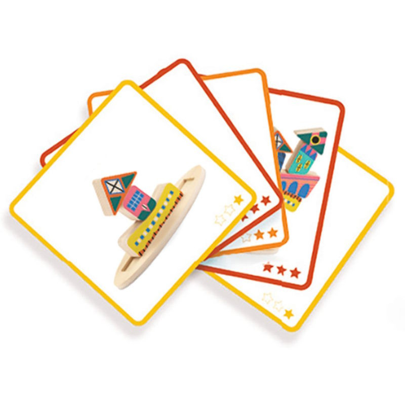 Un jeu de concentration et de construction très graphique, dès 3 ans, pour appréhender la notion d’équilibre. L’enfant doit reproduire les constructions indiquées sur les cartes-modèles en prenant soin de positionner les pièces dans le bon sens !